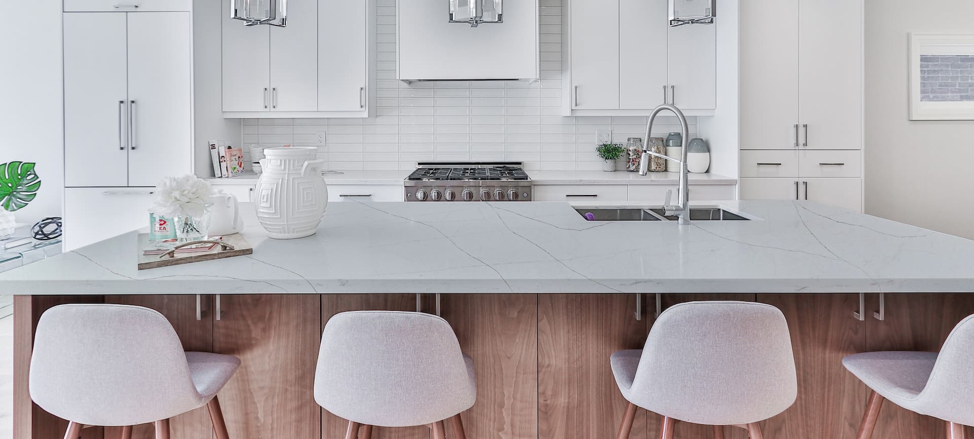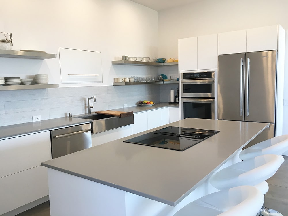 Explore the stunning array of our quartz countertop series designed to masterfully complement traditional, contemporary, & transitional homes. Each of these quartz slabs has a distinct visual appeal combining a color palette, mood, and pattern.